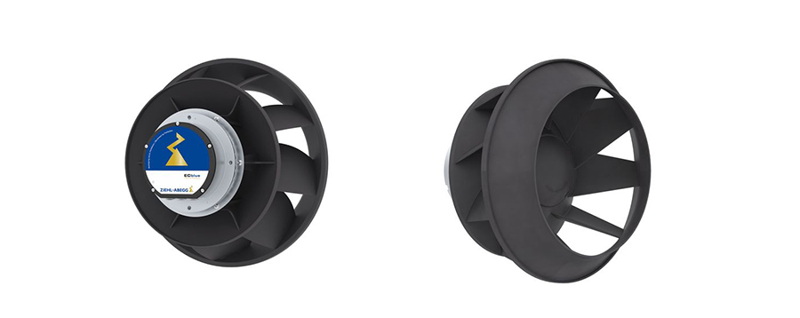 单侧吸入式后弯电机叶轮。可选尺寸为 355 至 560 mm。由此可使体积流量达 16,000 m³/h,最大静压达 900 Pa。